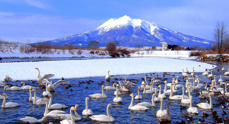 岩木川の支流の 平川河川敷の、白鳥が飛来する公園が有名で、
