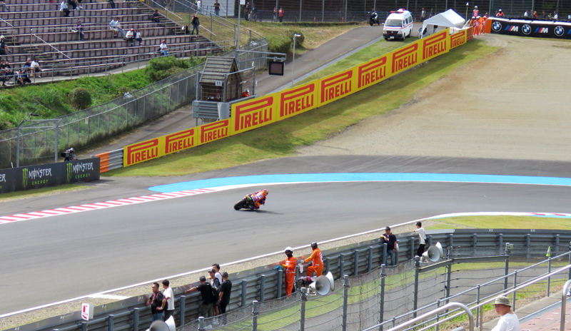 moto2になると、さすがに掛ける瞬間はコース上で、その後すぐにゼブラの上でブレーキングしている