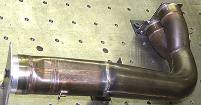リヤバンクのエキパイの曲がり、ワークス部品以上の真円度を保っています